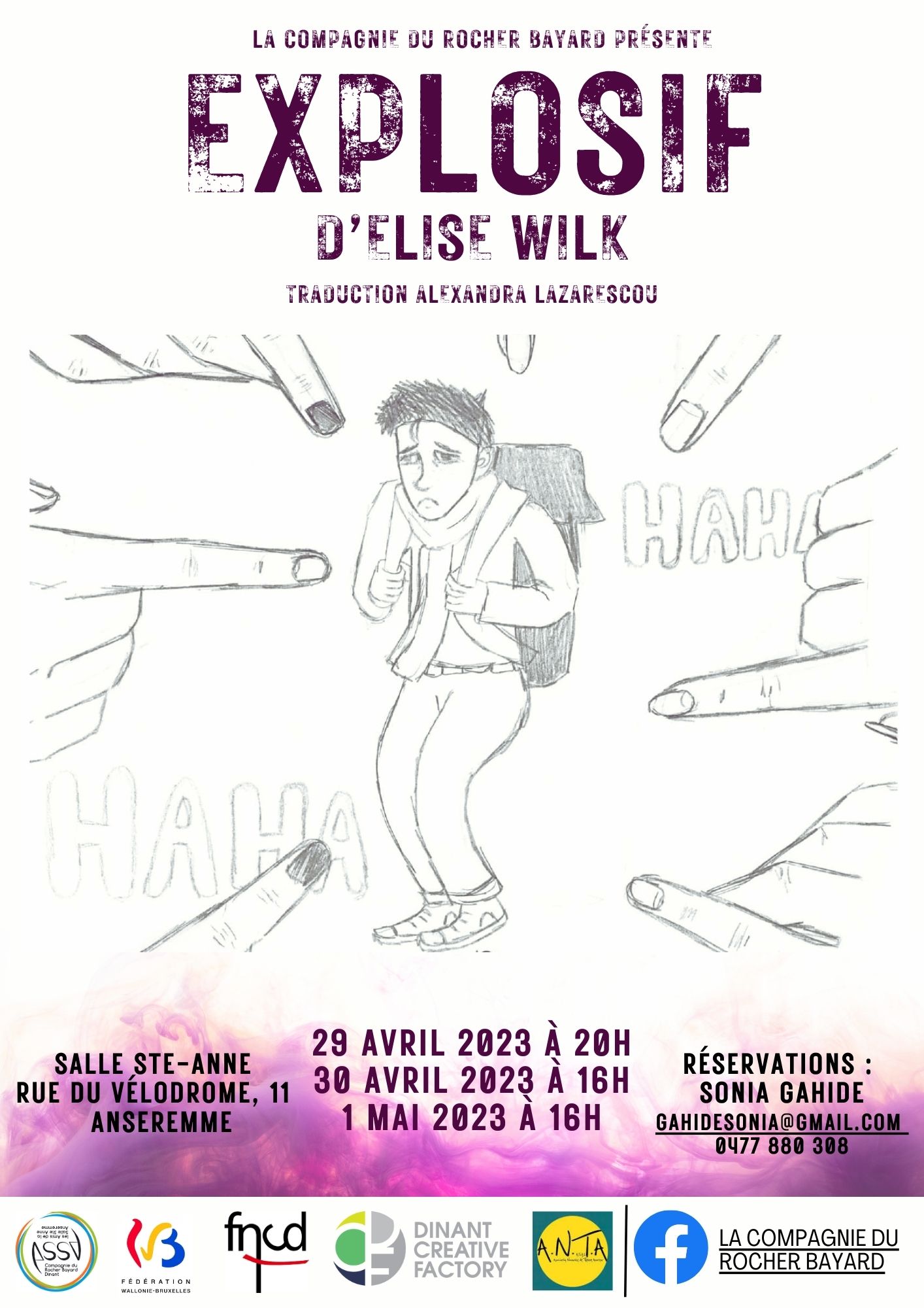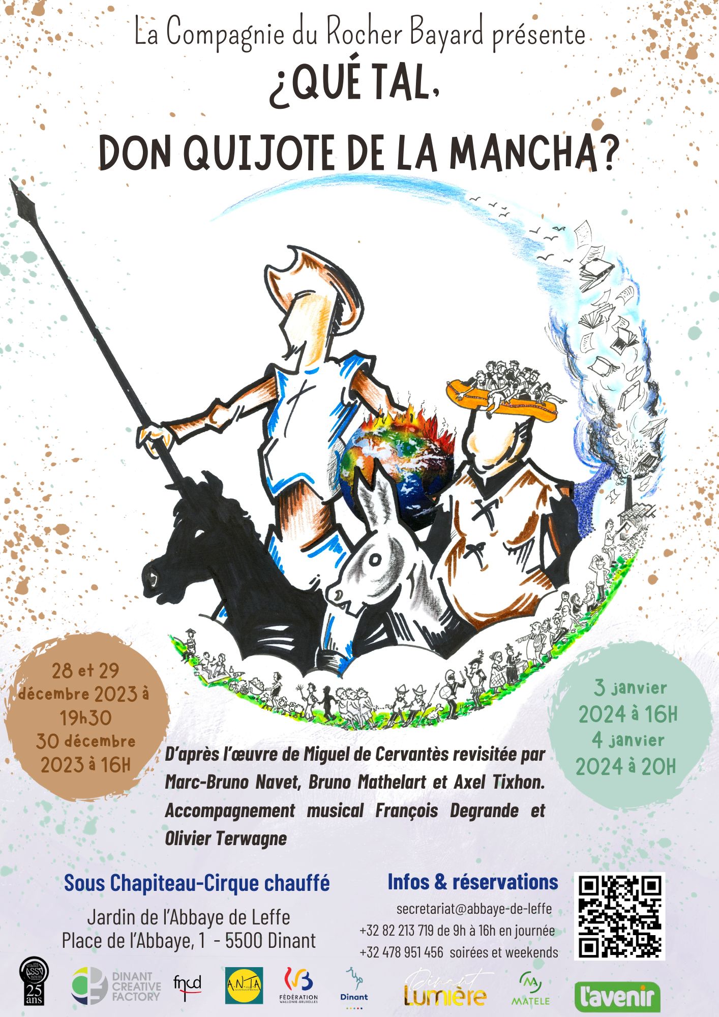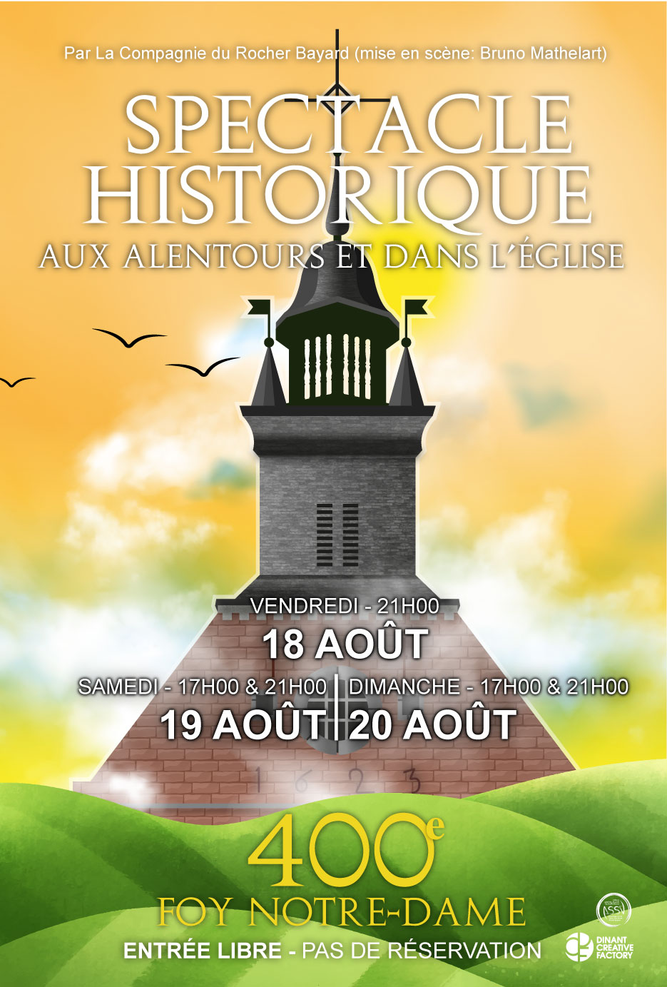 The Compagnie du Rocher Bayard is an emanation of ASSA. We propose at least 3 theatre plays a year. We have a teenage group and an intergeneration one. We perform historical plays that we write about the very rich heritage of our region, pieces from the classical or contemporary repertories. Our specificity : hybrid theatre, which means that we very often bring different techniques together : text, live music, dance, songs, acrobatics, wizards… Once a year, mostly in Summer time, we present an outside performance to highlight a site, an anniversary or a famous person (Adolphe Sax, Leffe Abbey, painters…)